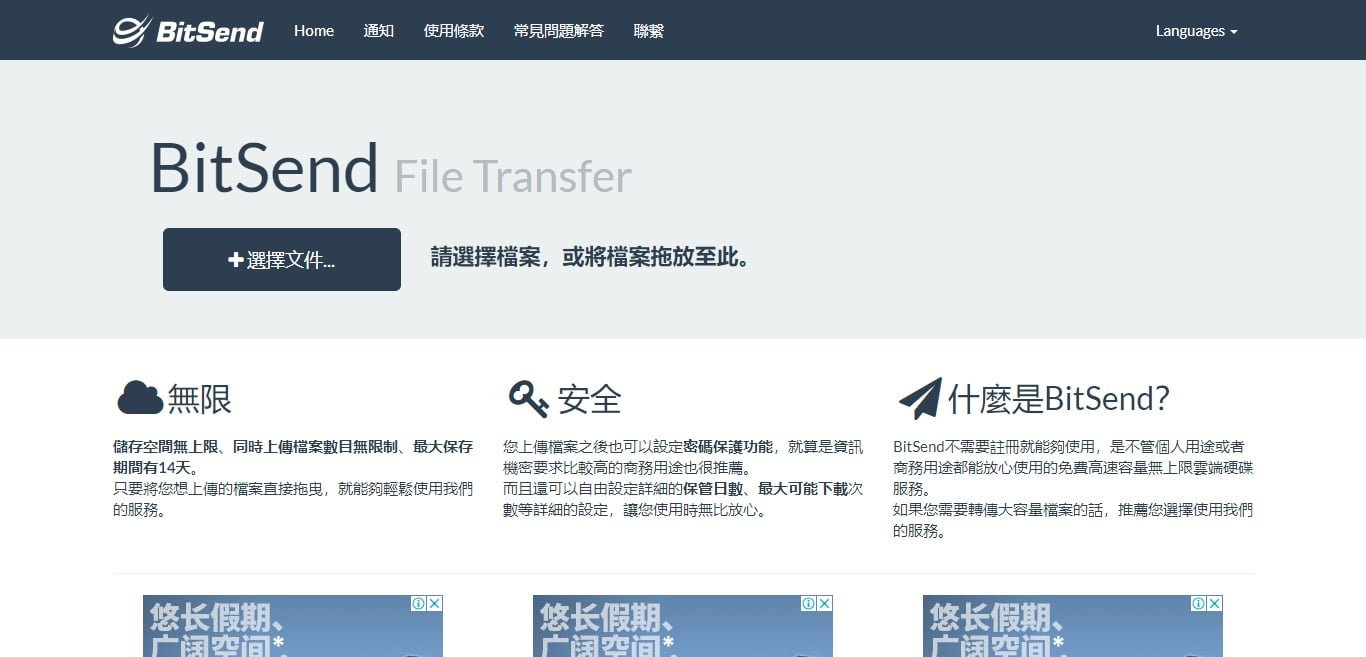 BitSend 日本免空,無容量流量限制,快速簡單又安全!可自訂密碼、保存時間、下載次數
